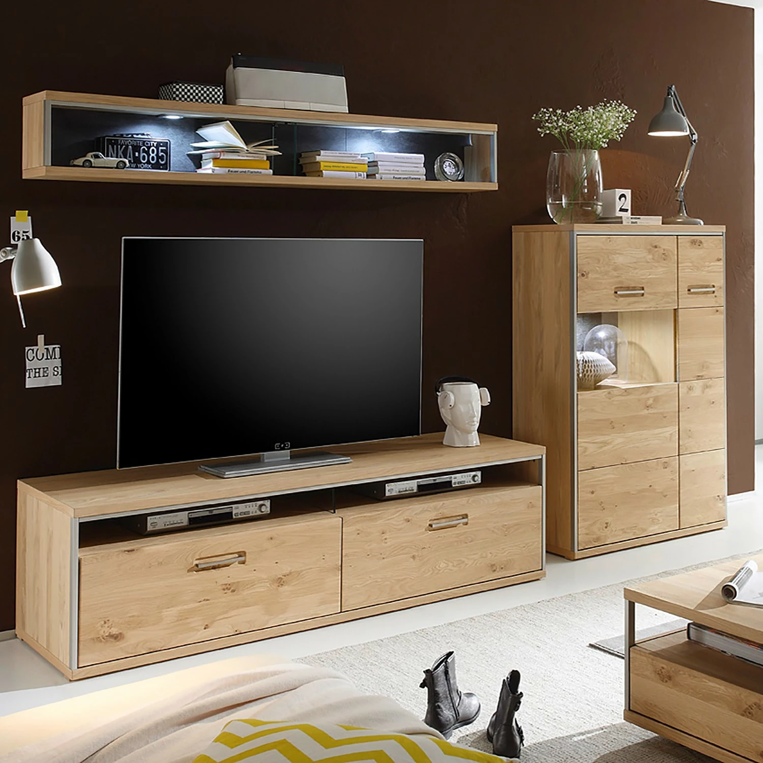 - Meuble TV : 2 tiroirs et 2 compartiments pour appareils électroniques