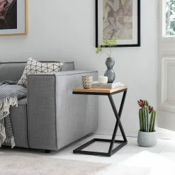 Ars manufacti Table d’appoint Doubs I – Acier / Bois massif – Noir ancien / Gris cérusé