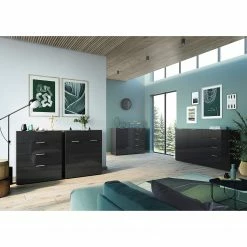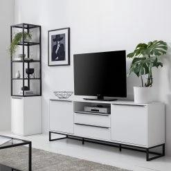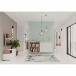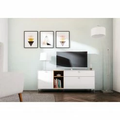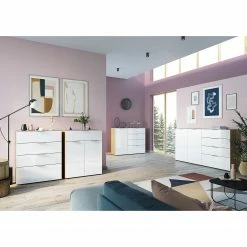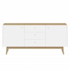 Germania Buffet Neston I – Partiellement en chêne massif – Blanc mat / Imitation chêne de Sanremo