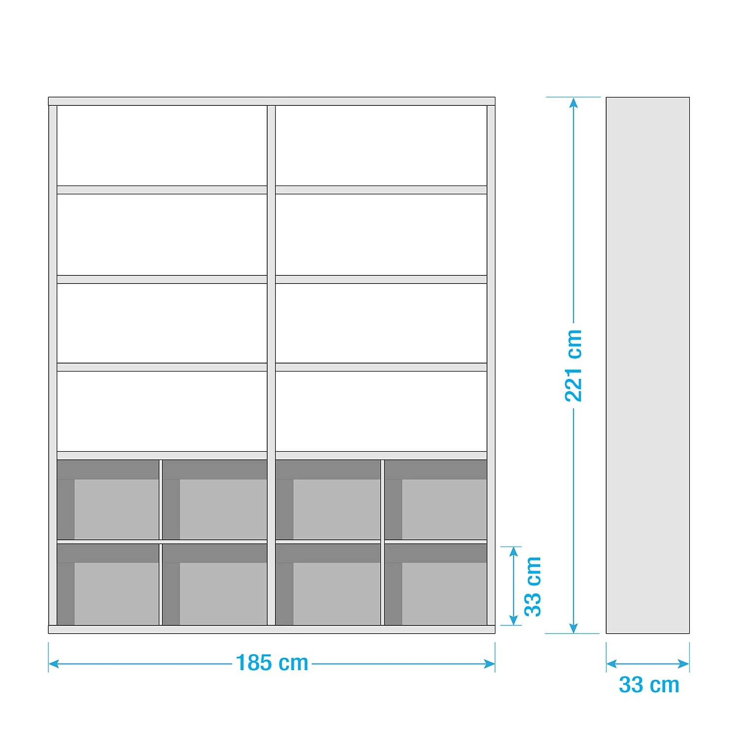 - Autres dimensions : Hauteur des compartiments ouverts : 32,9 cm