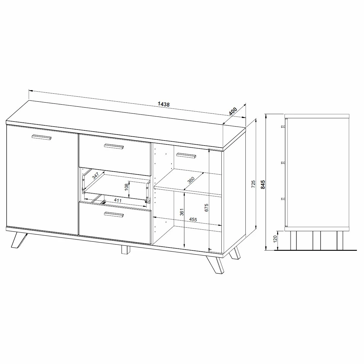 - Contenu de la livraison : Buffet, sans décoration