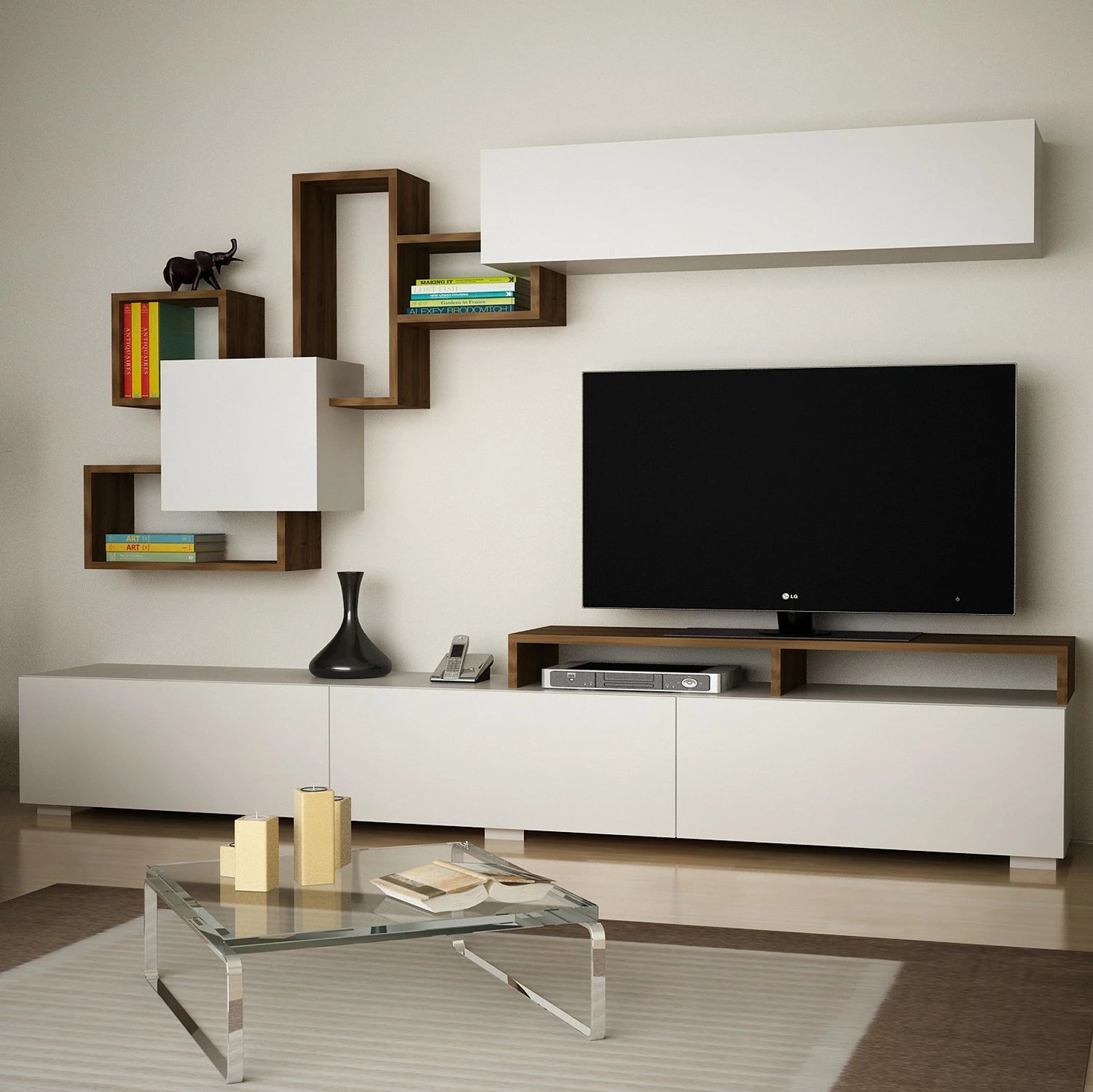 - Contenu de la livraison : Ensemble comprenant 1 meuble TV et 1 étagère murale, sans accessoires
