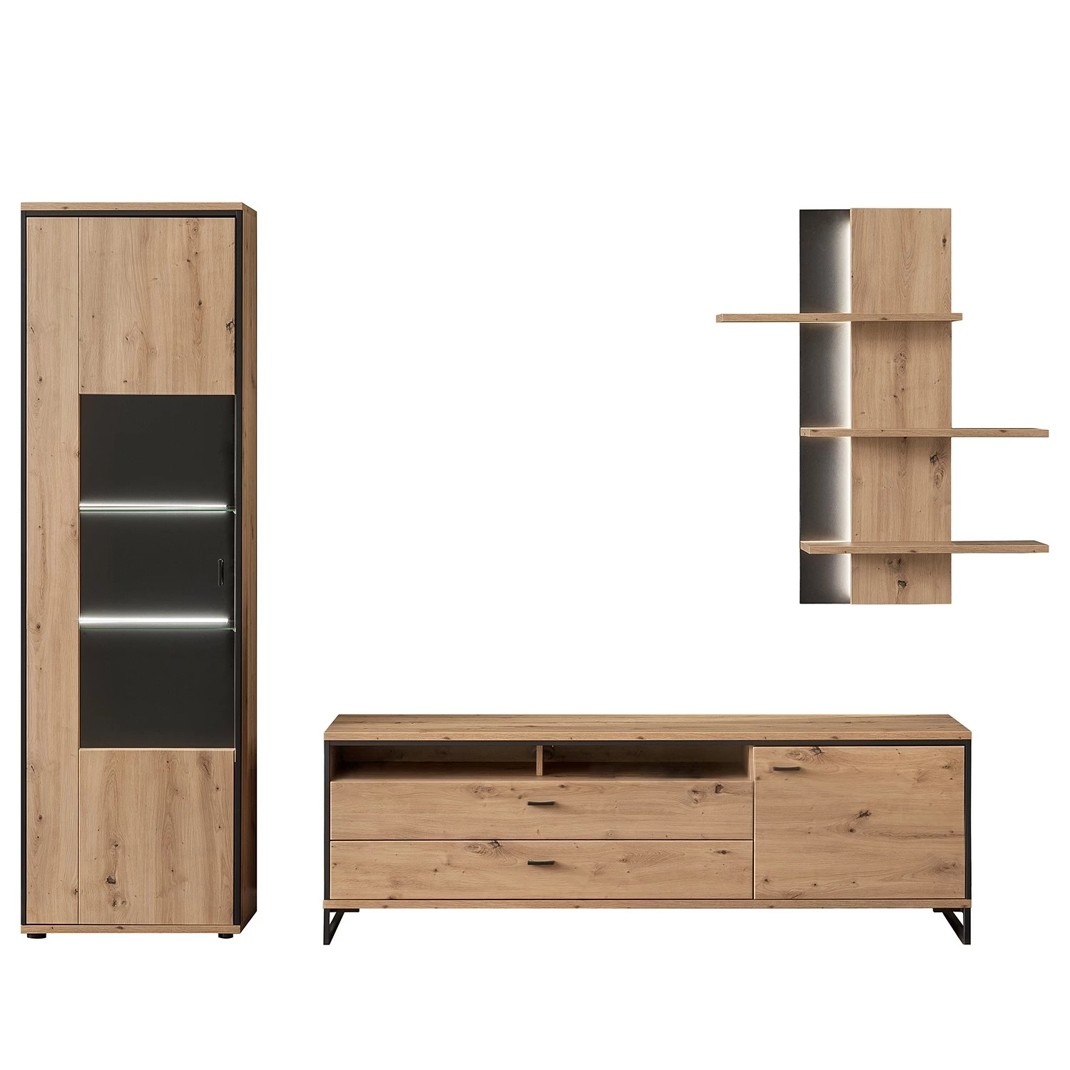 - Contenu de la livraison : 1 vitrine, 1 étagère murale, 1 meuble TV, sans accessoires