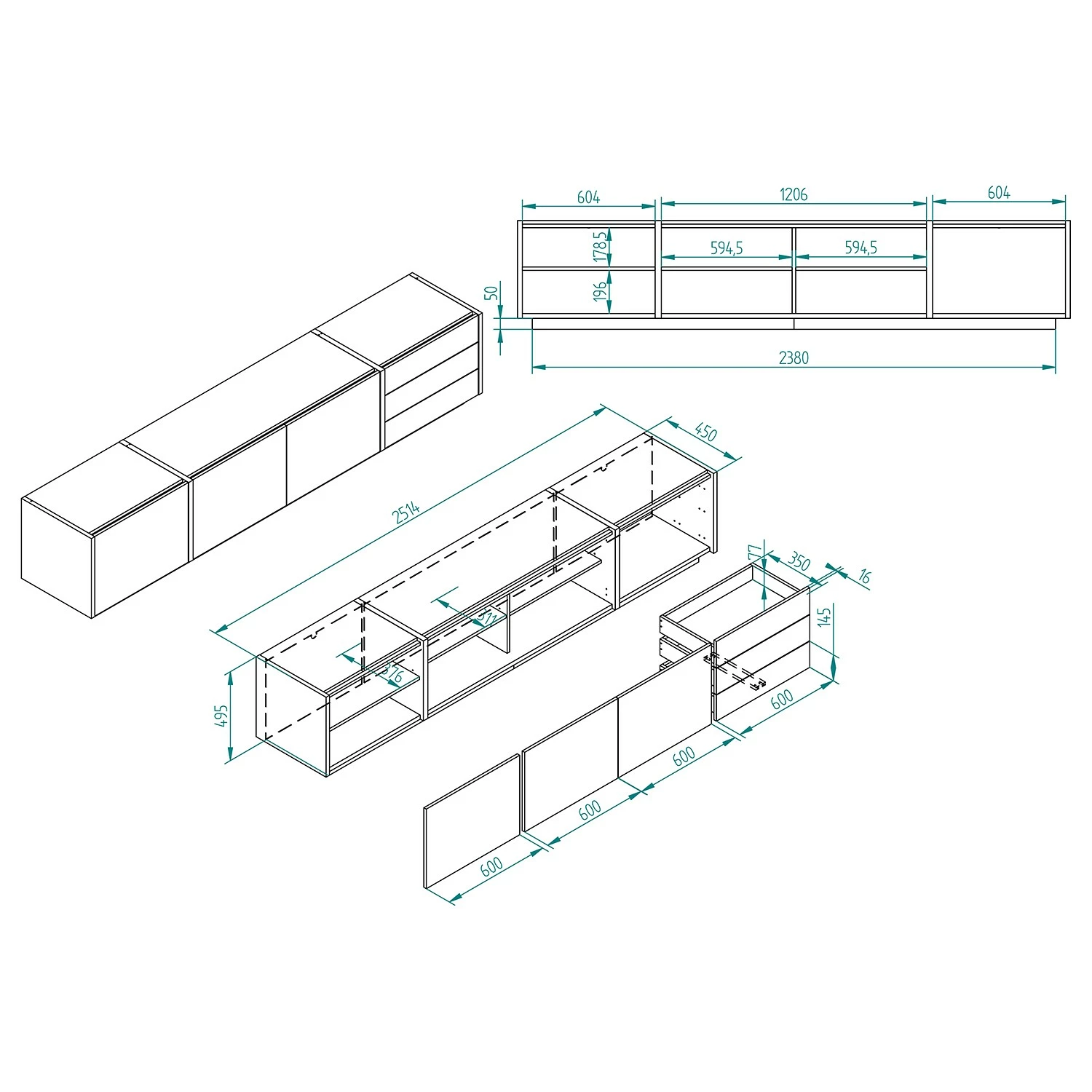 - Meuble TV : 210 x 50 x 45 cm