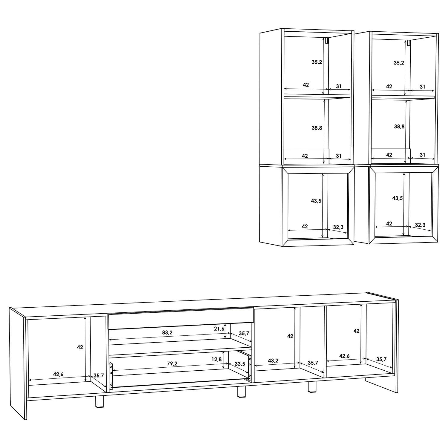 - Dimensions intérieures du tiroir : 79 x 12,8 x 33,5 cm chaque (L x H x P)