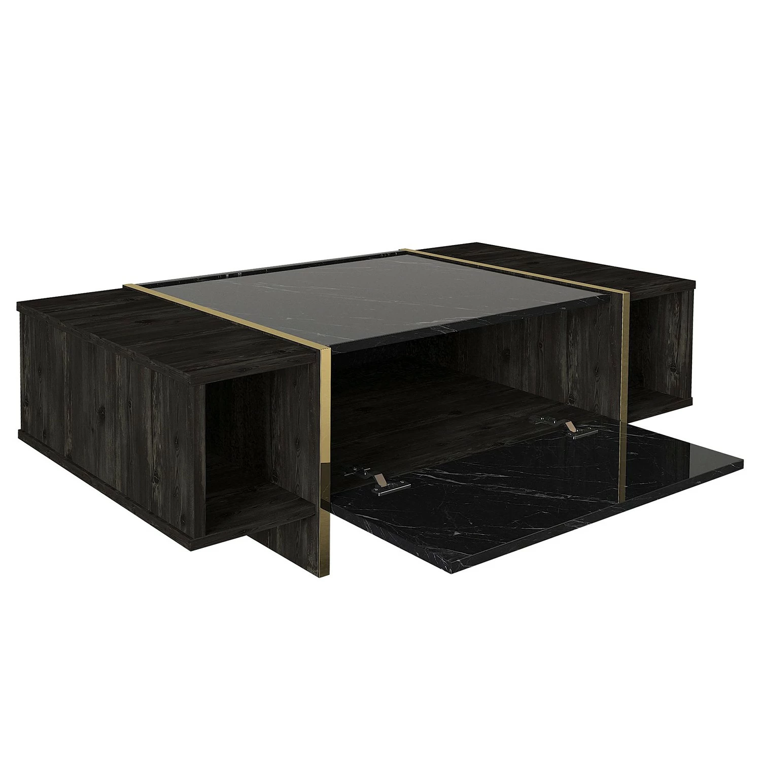 - Décor en marbre noir / Décor en noyer / Doré