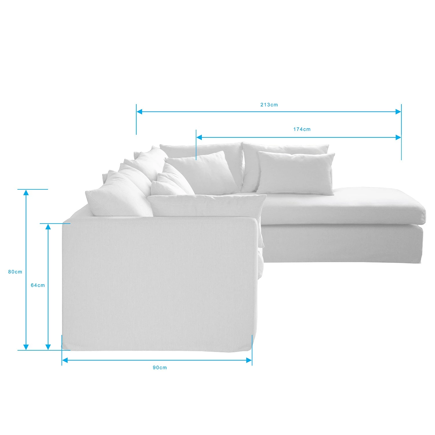 - Largeur de la méridienne longue : 213 cm