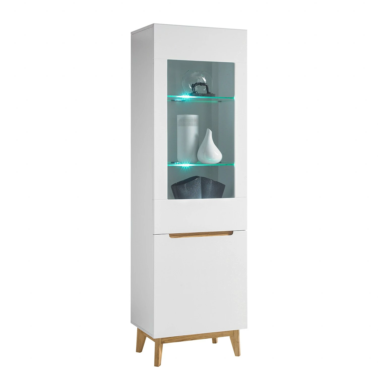 - Contenu de la livraison : 1 meuble TV, 2 tablette murale et 1 vitrine, sans éclairage ni accessoires