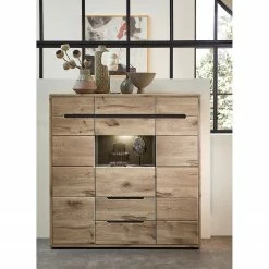 Fashion For Home Buffet haut Leox – Avec Ă©clairage inclus – Graphite / Imitation chĂȘne artisan
