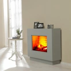 Ridgevalley Cheminée électrique Calgary – Blanc brillant – Insert de cheminée imitation de pierre