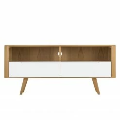 Studio Copenhagen Meuble TV Maayka II – Partiellement en chĂȘne massif – Blanc / ChĂȘne clair