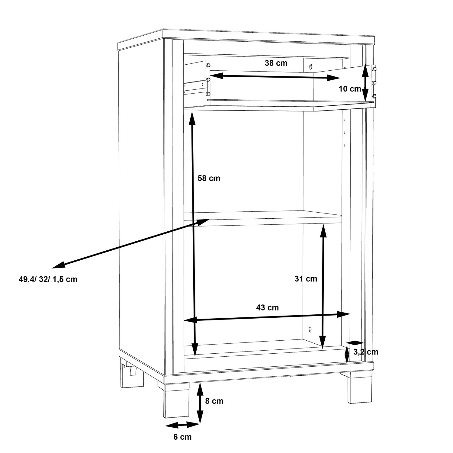 - Dimensions intérieures du tiroir : 38 x 34 cm (L x P)