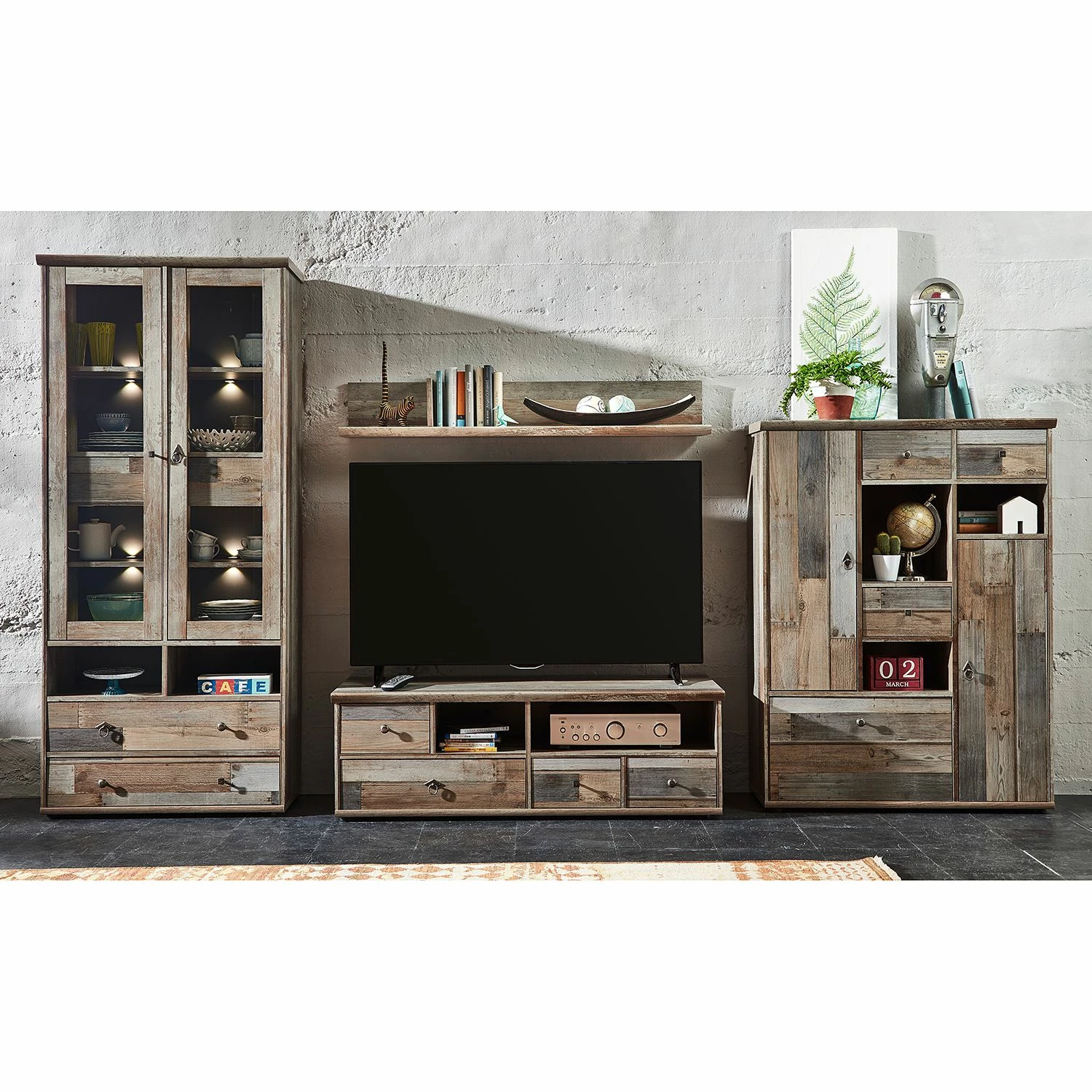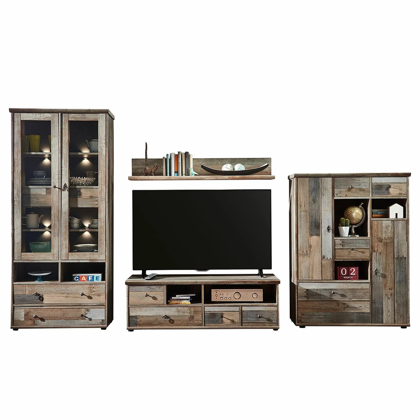 - Contenu de la livraison : ensemble de meubles 4 éléments avec éclairage, sans décoration