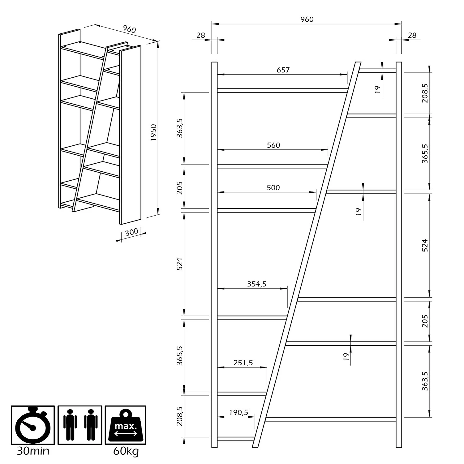 - Profondeur : 30 cm
