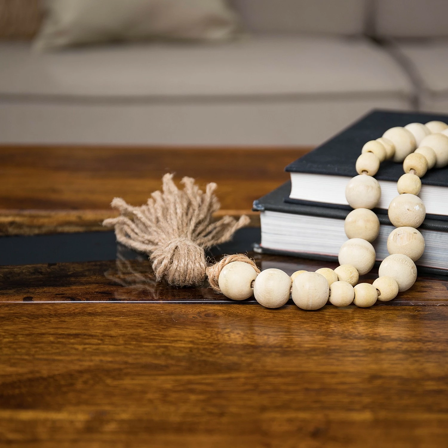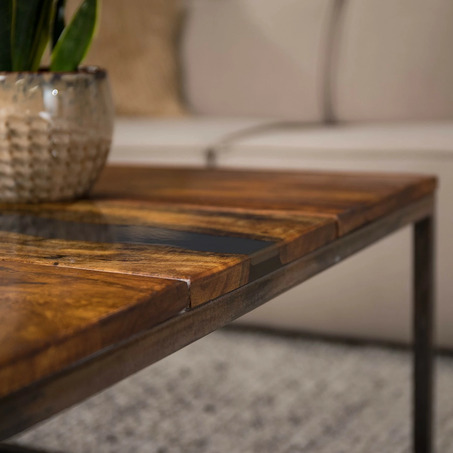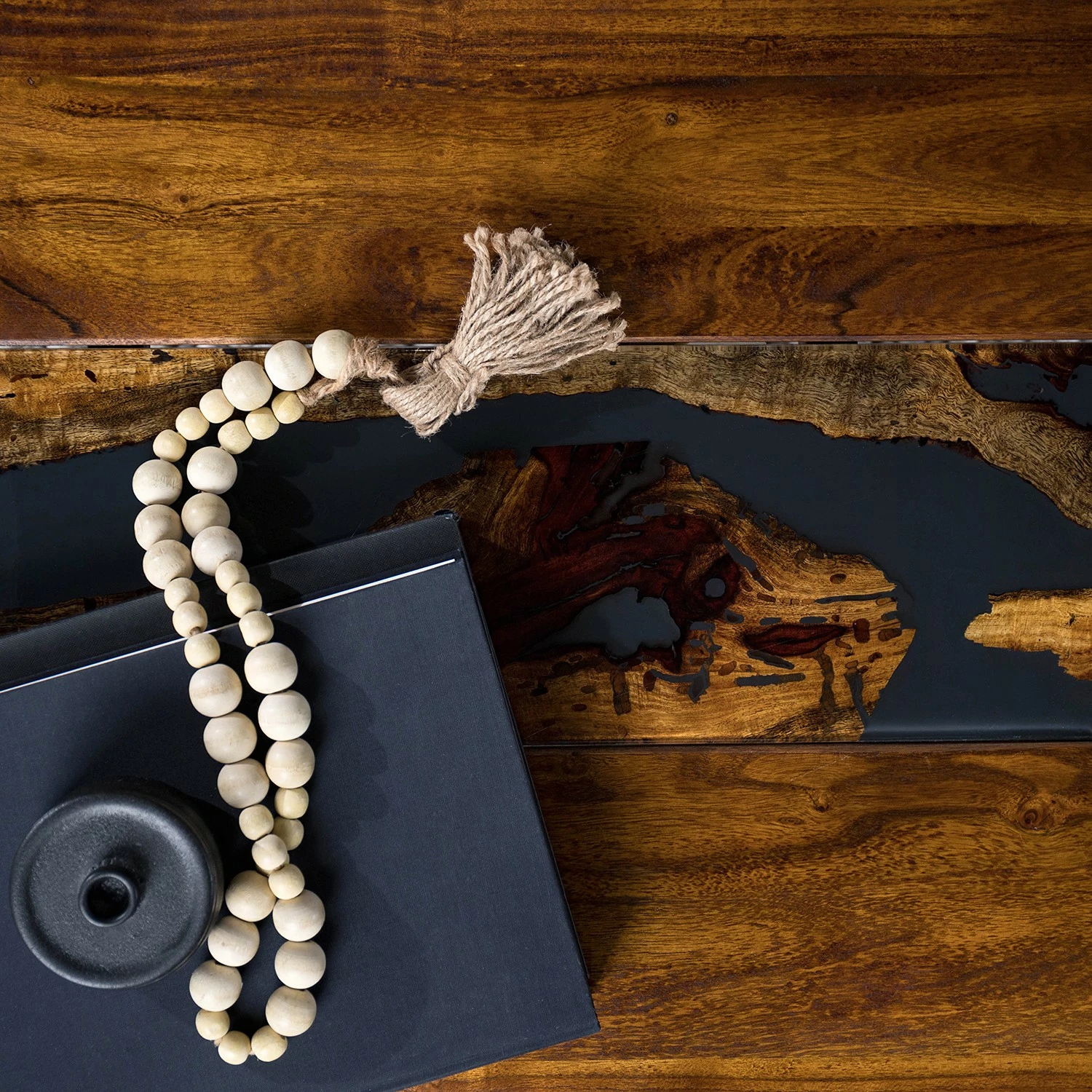 - Plateau de table : résine / acacia massif verni